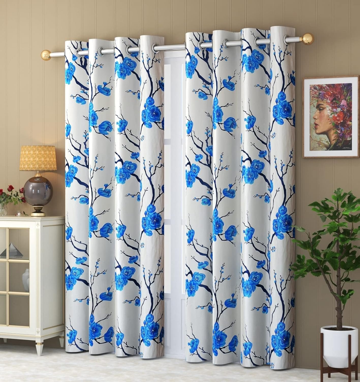 Homecrown Floral Print Curtains- Set of 2, Blue