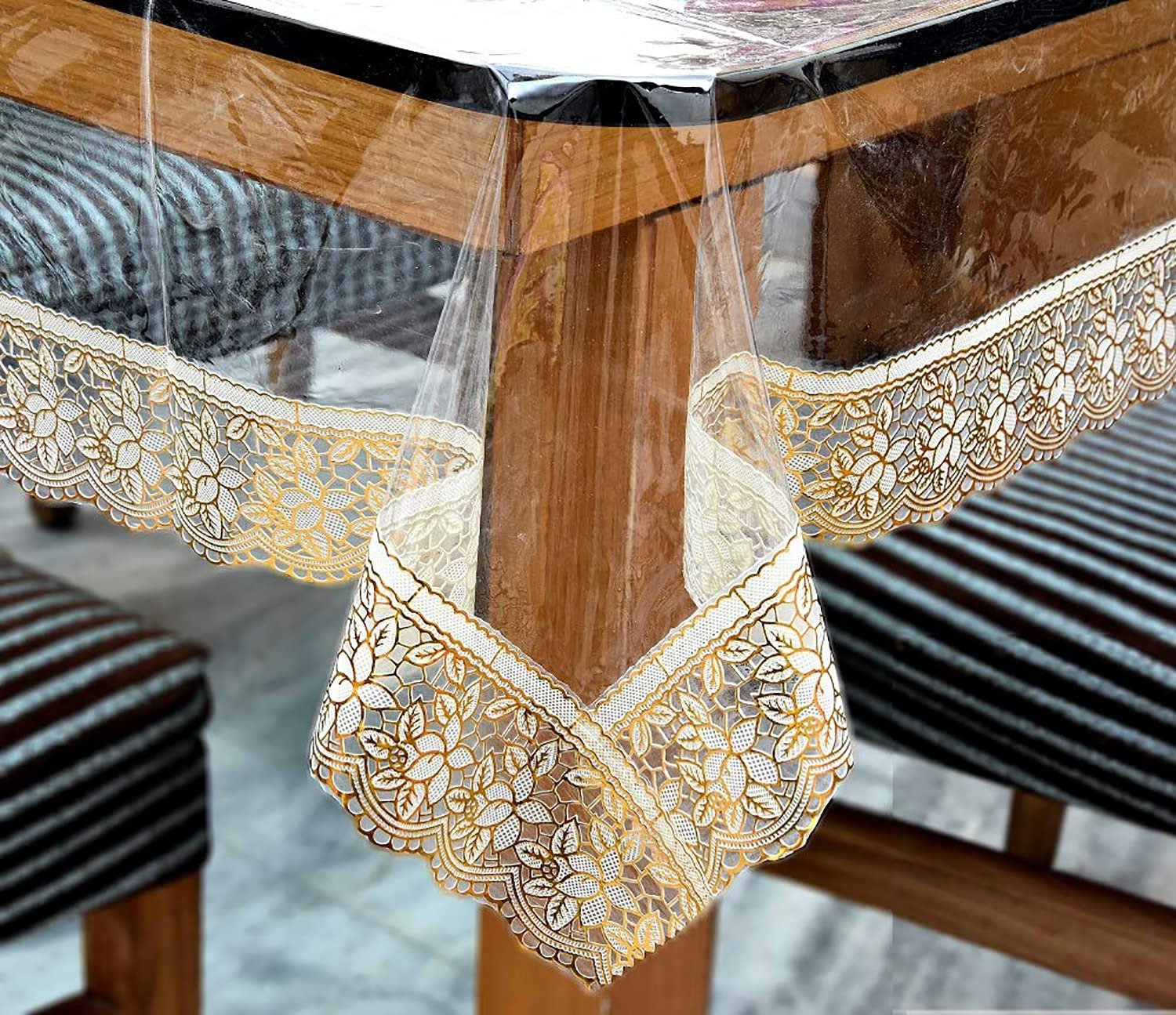 Homecrown Golden Lace 6 Seater Waterproof Dining Table Cover (Transparent, 60 X 90 Inches)