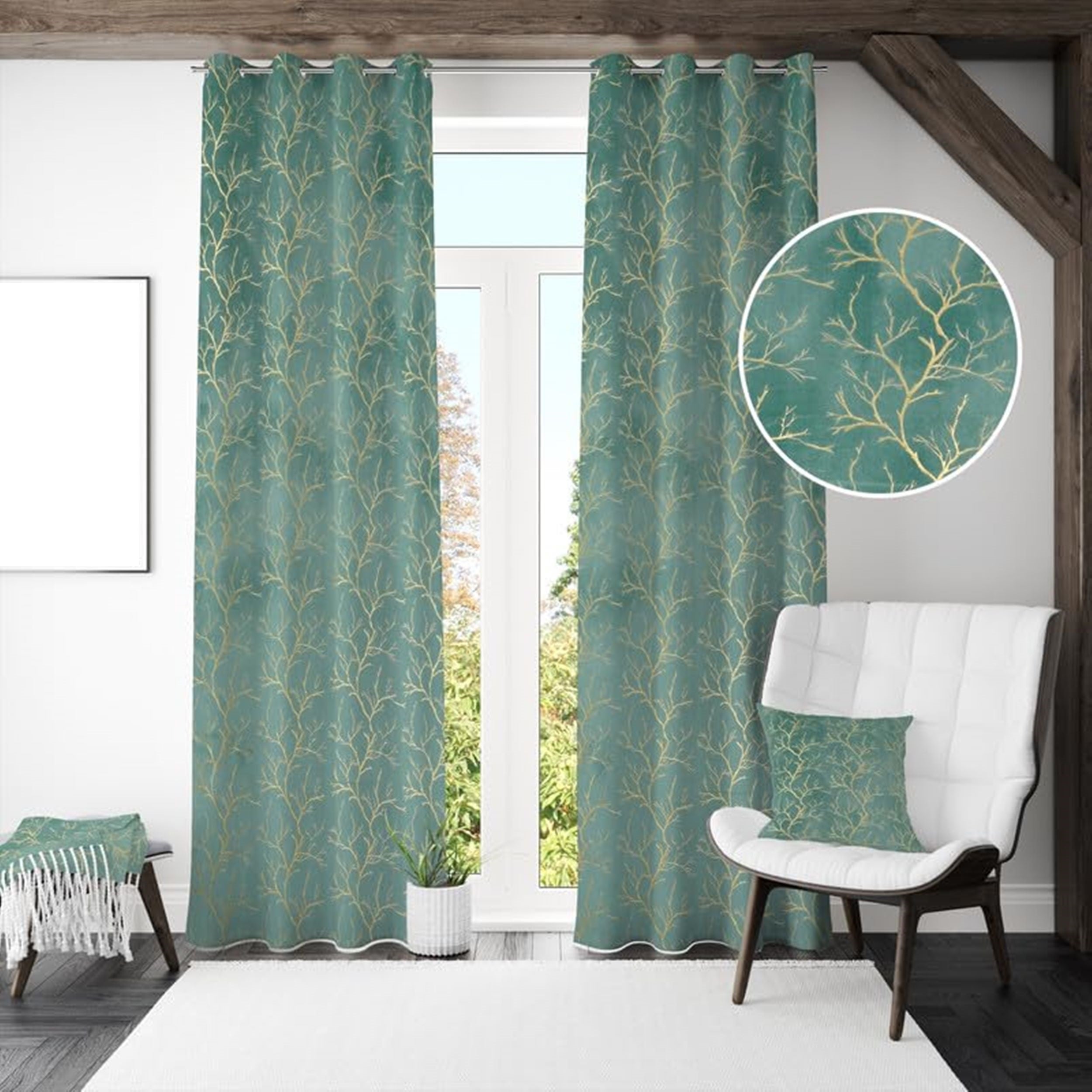 Homecrown Premium Velvet Fabric Room Darkening Curtains for Windows & Doors - Set of 2, Foil Print- Iceland