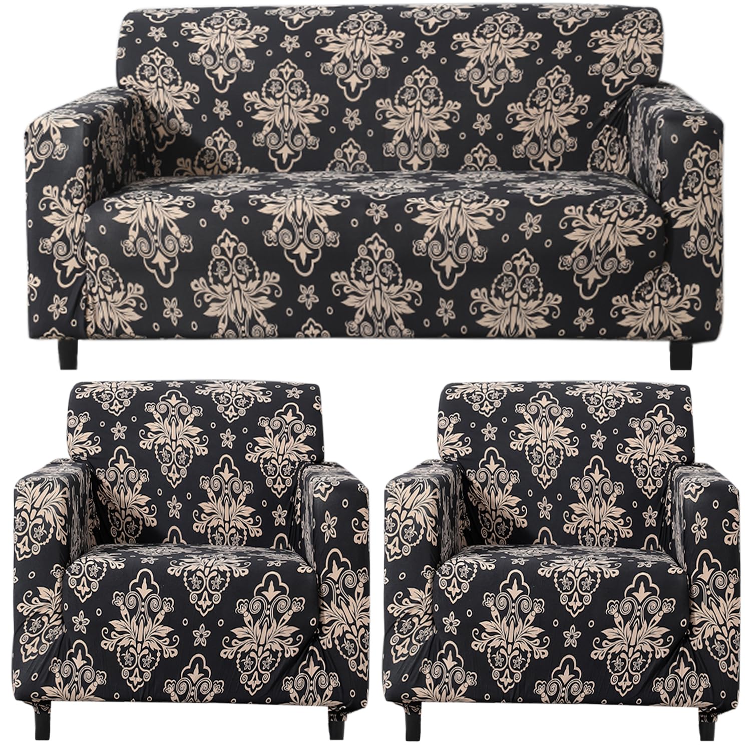 Homecrown Stretchable Fully Covered 5 Seater Sofa Cover Set (3+1+1) – Ethnic Design, Universal Fit & Non-Slip Protection