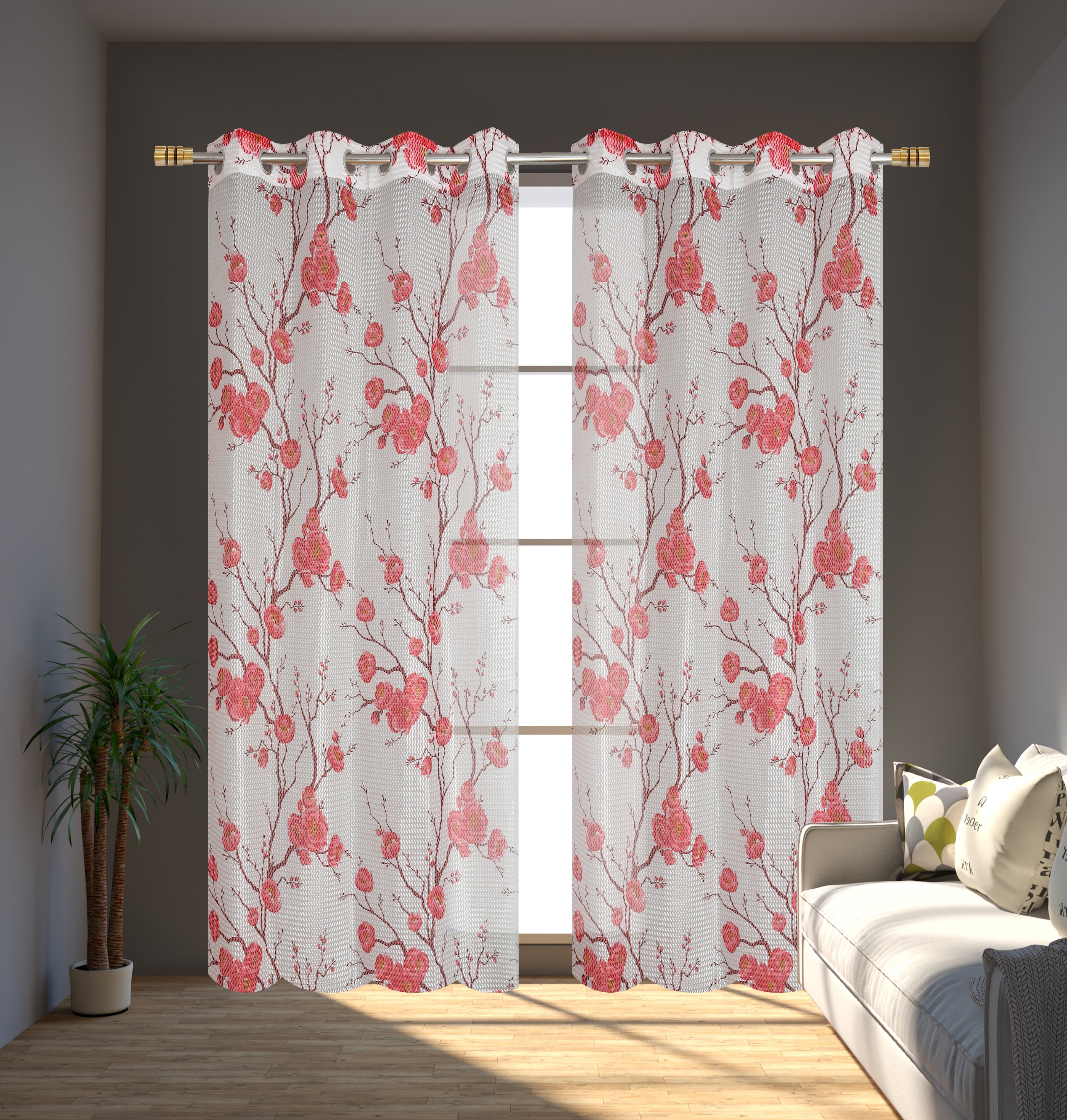 Homecrown Tissue Net Floral Print Curtains for Windows/Doors – Set of 2, Gulab- Maroon